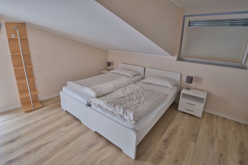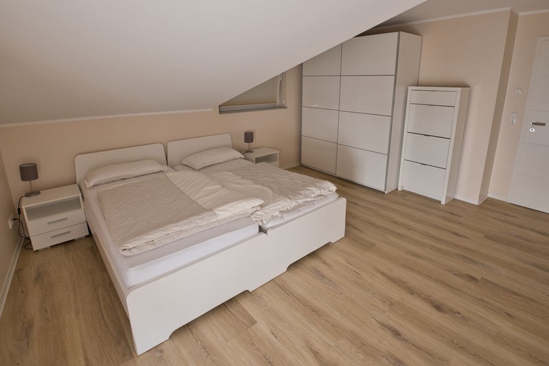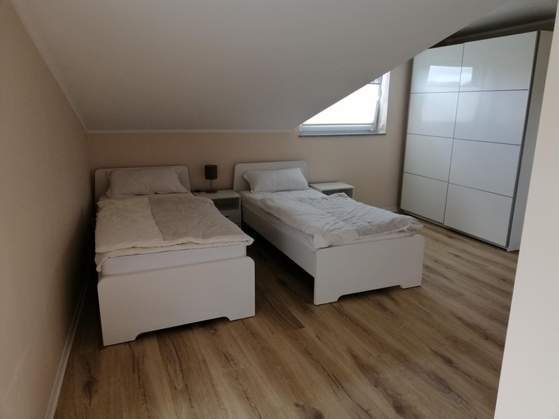 Die Betten können sowohl getrennt als auch zusammengestellt werden. Im Wohnbereich befindet sich jeweils eine ausziehbare Schlafcouch.